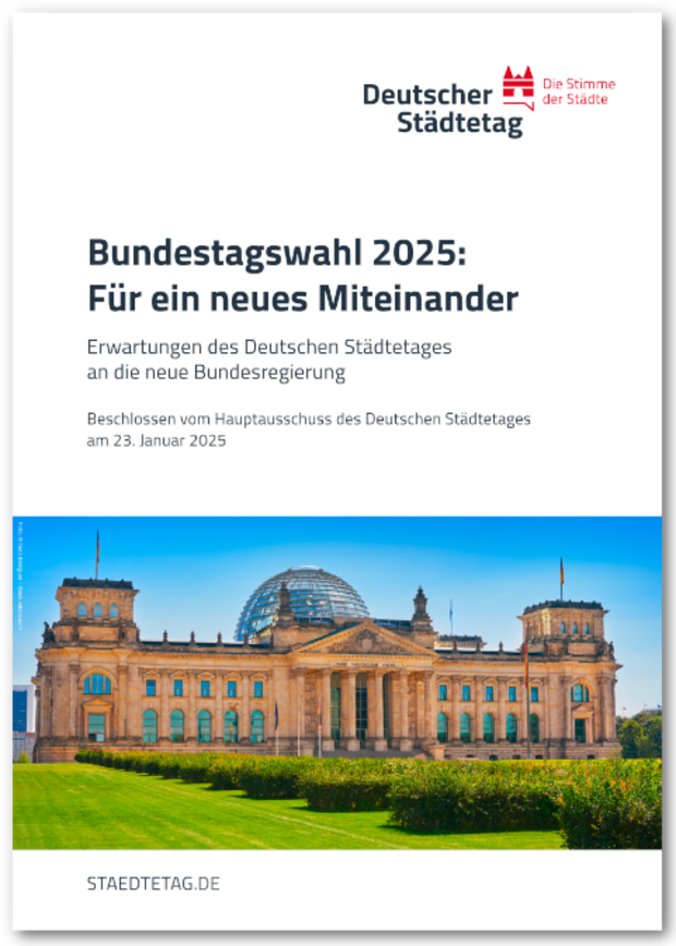 Alle Forderungen des Deutschen Städtetages finden Sie in der Online-Publikation "Für ein neues Miteinander: Erwartungen des Deutschen Städtetages an die neue Bundesregierung".