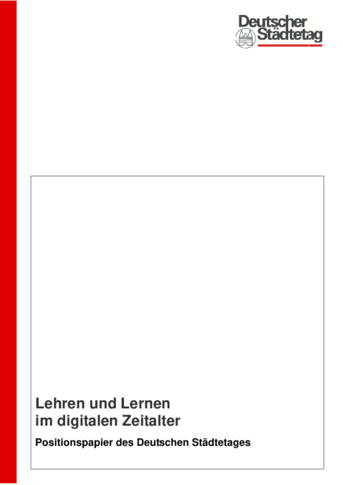 Das vorliegende Papier formuliert kommunale Positionen für die Weiterentwicklung des Lehrens und Lernens im digitalen Zeitalter. Es skizziert die für die Vermittlung von Medienkompetenz im digitalen Zeitalter notwendigen Rahmenbedingungen, richtet politische Forderungen an die Länder sowie den Bund und enthält Empfehlungen für die Städte.