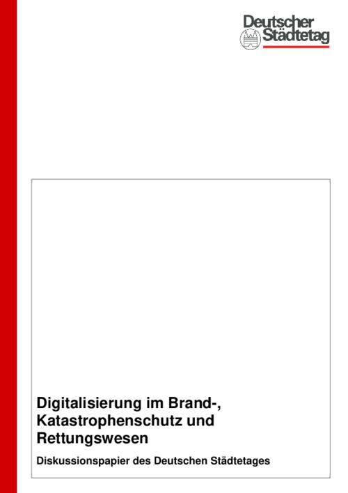 Die digitale Transformation im Brand-, Katastrophenschutz und Rettungswesen wird vor Ort in den Städten praktisch gestaltet. Dazu will dieses Diskussionspapier aktuelle Entwicklungen aufzeigen. Gleichzeitig soll es eine vertiefte Diskussion in den Mitgliedsstädten und den Mitgliedsverbänden anregen.
