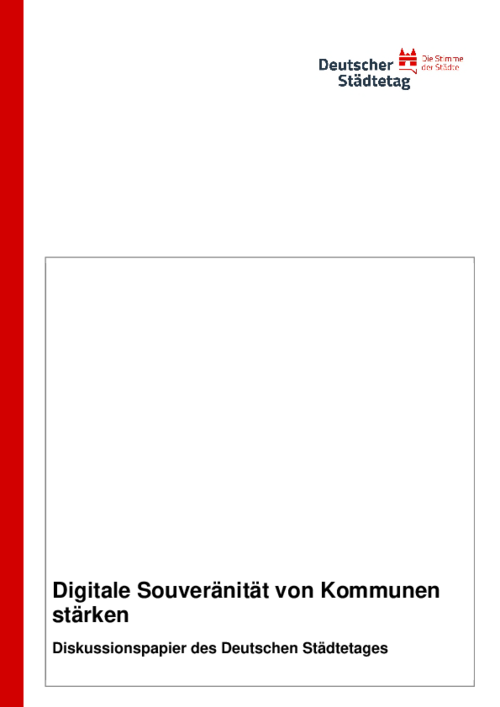 Das vorliegende Diskussionspapier möchte den Begriff der "Digitalen Souveränität" auch abseits der meist fachlich-technischen Diskurse zugänglich machen. Es werden ein politisches Leitbild für digitale Unabhängigkeit auf kommunaler Ebene gezeichnet und politische Forderungen entwickelt. Entstanden ist das Papier innerhalb der gemeinsamen Initiative „Digitale Souveränität“ von Deutschem Städtetag und KGSt. Wir wollen den politisch-strategischen Blick des Städtetages innerhalb dieser Initiative mit dem anwendungsorientierten Ansatz der KGSt verbinden. So werden Stärken für mehr digitale Souveränität auf kommunaler Ebene gebündelt."