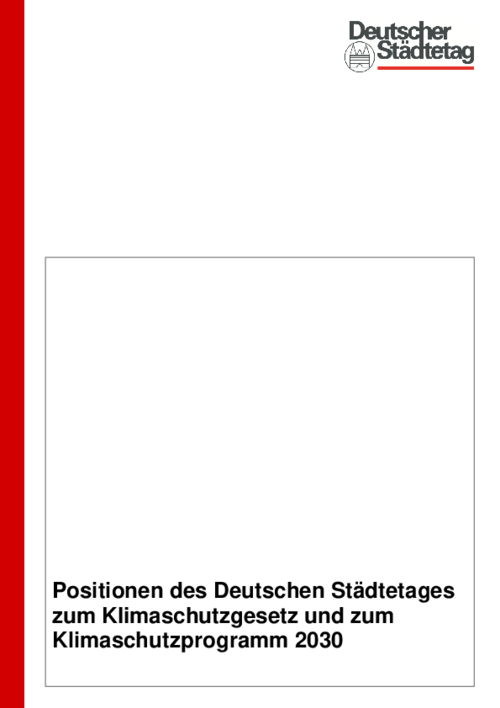 Klimaschutz bewegt auch die deutschen Städte seit langem. Klimaschutz und Klimaanpassung sind Leitlinien ihres Handelns geworden und bestimmen die politischen Entscheidungen vor Ort. Allein die 14.000 kommunalen Klimaschutzprojekte, die von 2008 bis 2018 über die Kommunalrichtlinie gefördert wurden, sprechen eine deutliche Sprache. Der Deutsche Städtetag möchte mit dem vorliegenden Positionspapier Impulse für bessere Rahmenbedingungen auf der Bundesebene setzen.