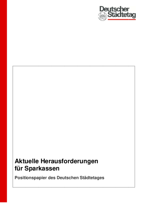 Vor diesem Hintergrund hat der Deutsche Städtetag bei seiner Hauptausschuss-Sitzung am 22.02.2017 in Osnabrück über die Situation der Sparkassen beraten und das vorliegende Positionspapier zustimmend zur Kenntnis genommen.
