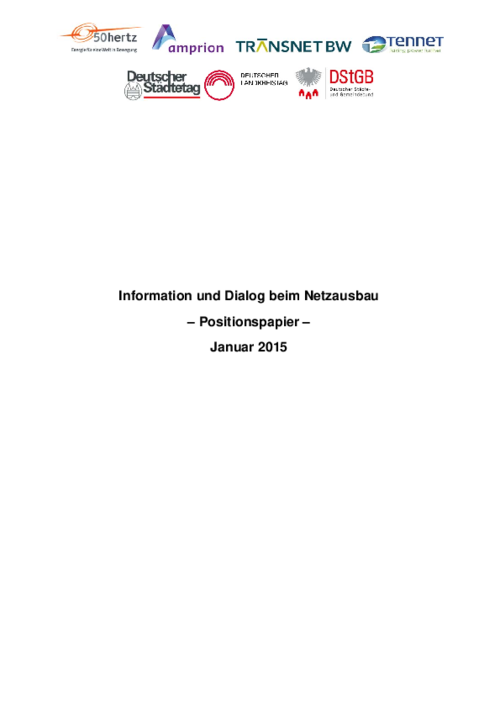 Zur Schaffung der Akzeptanz halten die kommunalen Spitzenverbände und die Übertragungsnetzbetreiber eine frühzeitige und umfassende Information und den Dialog mit Bürgerinnen und Bürgern bei der Planung und Umsetzung von Netzbaumaßnahmen für unverzichtbar.