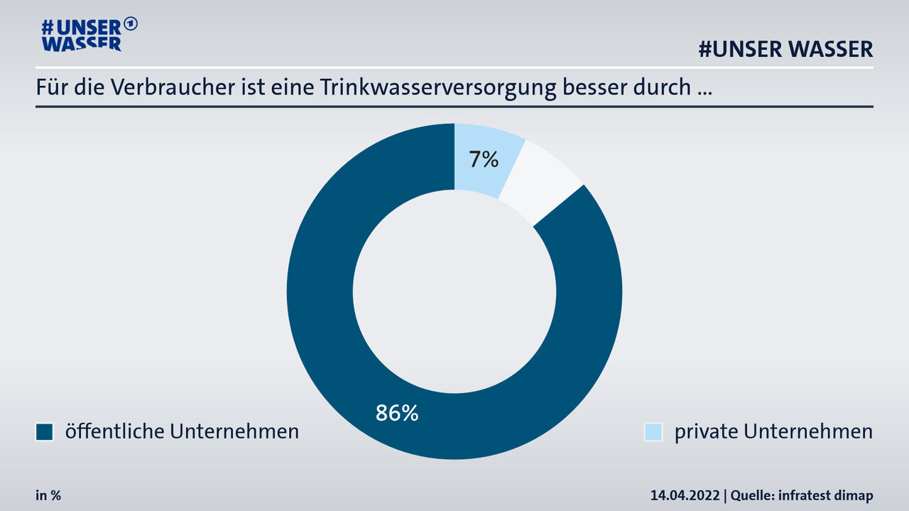 Frage: Wenn Sie an die Versorgung mit Trinkwasser in Deutschland denken: Was ist für die Verbraucher Ihrer Meinung nach besser? Eine Trinkwasserversorgung durch öffentliche Unternehmen oder eine Trinkwasserversorgung durch private Unternehmen?