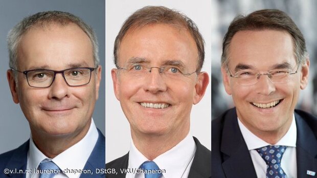 Die Städte, Gemeinden und die kommunalen Unternehmen entwickeln die bestehenden Systeme weiter, damit Daseinsvorsorge immer und überall verlässlich und bezahlbar bleibt. Gleichzeitig wollen wir rasch klimaneutral werden. Und es geht darum, unsere Infrastruktur an die Veränderungen des Klimas anzupassen. Für die notwendigen Investitionen brauchen wir den richtigen Rahmen und politische Vorgaben, die sich am Machbaren orientieren", erklären Helmut Dedy, Hauptgeschäftsführer des Deutschen Städtetages, Dr. Gerd Landsberg, Hauptgeschäftsführer des Deutschen Städte- und Gemeindebundes, und Ingbert Liebing, VKU-Hauptgeschäftsführer: