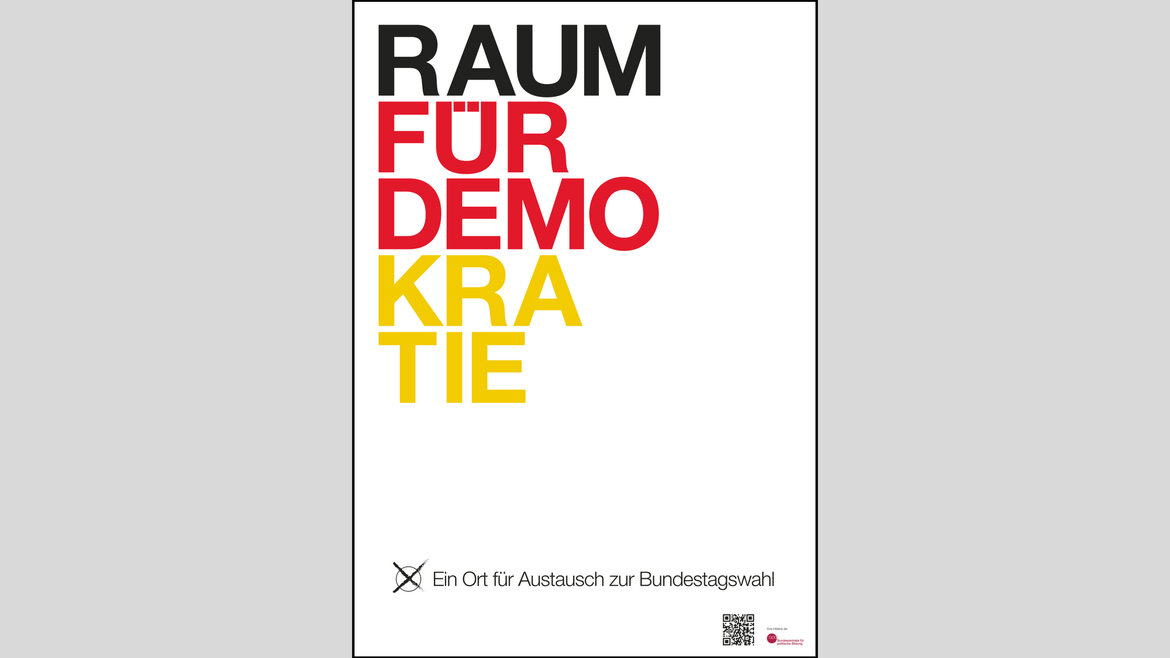Die Bundeszentrale für politische Bildung ruft auf, "Raum für Demokratie" zu werden. Bildungseinrichtungen, Unternehmen, Vereine oder auch kulturelle Einrichtungen, Kunst- und Kulturzentren oder Buchläden sollen damit zur Bundestagswahl den Austausch zu politischen Themen fördern. Insgesamt werden 1.000 "Räume für Demokratie" gesucht. Die Bundeszentrale für politische Bildung stellt eine Plakette und ein Plakat zur Verfügung. Damit können die teilnehmenden Einrichtungen ihre Räumlichkeiten entsprechend kennzeichnen. Zudem gibt eine Liste mit Interaktions- und Veranstaltungsideen, von der sich die "Räume für Demokratie" inspirieren lassen können.