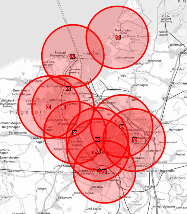Um auch bei einem großflächigen Stromausfall Notrufe zu ermöglichen, hat die Hanse- und Universitätsstadt Rostock innerhalb des Stadtgebiets elf sogenannte Katastrophenschutz-Leuchttürme eingerichtet. An den mobilen Meldestellen lassen sich Hilfegesuche weitergeben und Rettungseinsätze koordinieren und gibt es im Krisenfall aktuelle Informationen. Innerhalb eines Drei-Kilometer-Radius kann jeder Rostocker Haushalt einen dieser Leuchttürme erreichen.