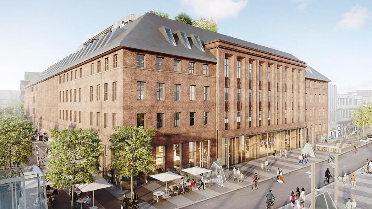 Besonderer Höhepunkt im wahrsten Sinne wird das Dach, das mit seiner begehbaren Parklandschaft neue Perspektiven eröffnet, natürlich barrierefrei und nach den Prinzipien der Schwammstadt konzipiert. Diese Grüninsel ist zentraler Ruheort und Beitrag zur klimaresilienten Stadt zugleich.