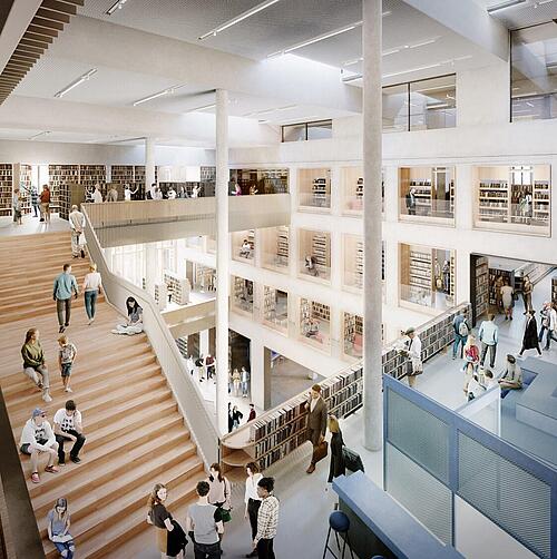 Es entsteht ein offener, großstädtischer, hoch digitalisierter Begegnungsort, der Maßstäbe für das lebenslange Lernen und Erfahren setzt. So wird ein analog-digitaler Möglichkeitsraum geschaffen.