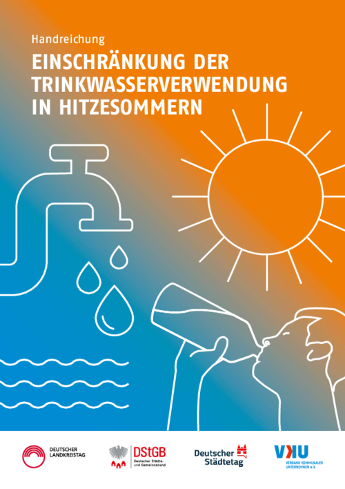Für Situationen, in denen sich eine akute Wasserknappheit und ein damit verbundener Versorgungsengpass abzeichnen und deswegen Nutzungsbeschränkungen oder Verwendungsverbote erforderlich werden, soll die vorliegende Handreichung den beteiligten Akteuren auf allen Ebenen Orientierung bieten. Sie wurde von einer gemeinsamen Arbeitsgruppe des Deutschen Städtetages, des Deutschen Städte- und Gemeindebundes, des Deutschen Landkreistages und des VKU unter enger Beteiligung von Praxisvertretern aus kommunalen Wasserversorgungsunternehmen, den Landkreisen als untere Wasserbehörden sowie von Städten und Gemeinden erarbeitet. Mittels fachlicher und juristischer Einordnungen und die Bündelungen von Praxiserfahrungen soll die Publikation Einblicke in den aktuellen bundesweiten Erfahrungshorizont liefern.