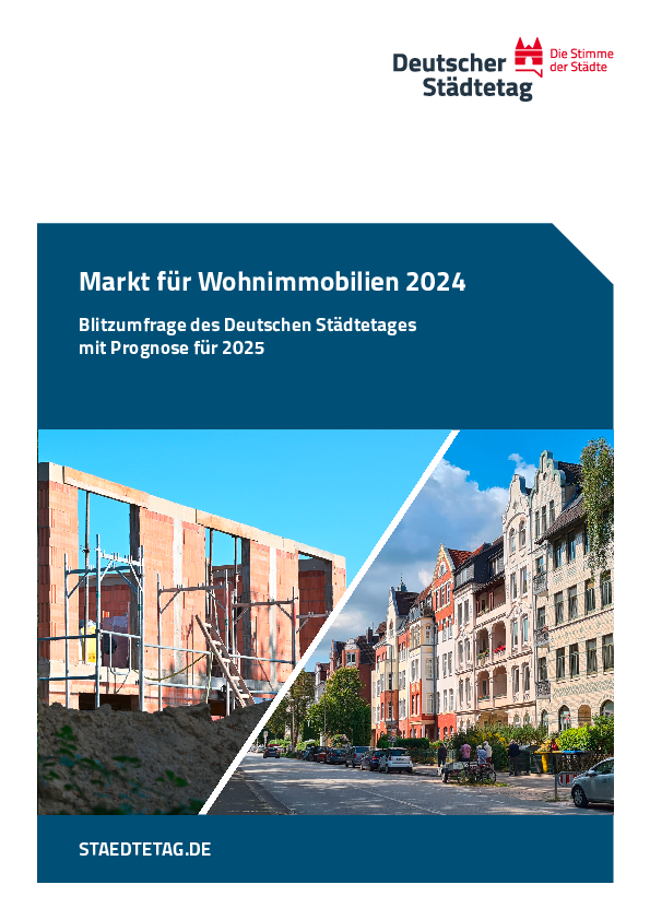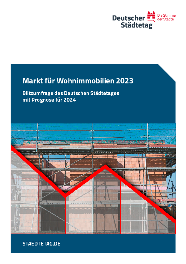In einer Blitzumfrage ermittelte der Deutsche Städtetag zu Jahresbeginn unter allen Mitgliedsstädten ab 50.000 Einwohnerinnen und Einwohnern die Entwicklungstendenzen des Marktes für Wohnimmobilien im vergangenen Jahr. Insgesamt 105 Städte haben sich an der Umfrage beteiligt. Das Ergebnis: Die Umsätze (Kaufvertragszahlen) sind in den fünf untersuchten Kategorien für 70 Prozent (die Spanne liegt in den einzelnen Teilmärkten bei 67 bis 75 Prozent) der Städte rückläufig, in 17 Prozent (12 bis 25 Prozent) auf Vorjahresniveau und in 13 Prozent (9 bis 15 Prozent) wurde eine Steigerung ermittelt. Die dargestellten Tendenzen sind sowohl für die Bauplätze (individuelle Bauweise, Geschosswohnungsbau) als auch für die bebauten Grundstücke relativ einheitlich. Im Vergleich zum Vorjahr (36 Prozent) hat sich der Anteil der Städte mit Umsatzrückgängen nahezu verdoppelt.