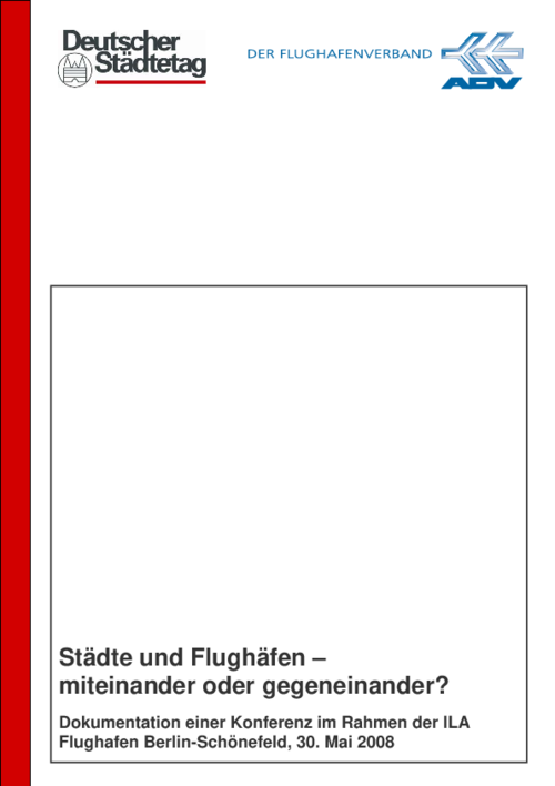 "Städte und Flughäfen – Miteinander oder Gegeneinander?" lautete das Motto der Veranstaltung am 30. Mai 2008, die der Deutsche Städtetag und der Flughafenverband ADV erstmalig durchführten. Ziel der Konferenz war es, das Zusammenspiel von Städten und Flughäfen aus unterschiedlichen Blickwinkeln und Interessenkonstellationen zu betrachten.