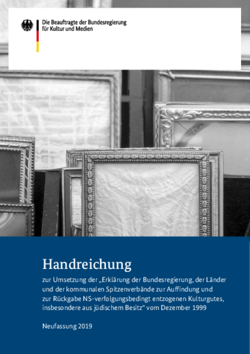 Ergänzend zur Gemeinsamen Erklärung wurde eine Handreichung mit konkreten Hinweisen zur praktischen Umsetzung erarbeitet. Sie wurde letztmalig im Jahr 2007 aktualisiert. Vor dem Hintergrund der seitdem eingetretenen Entwicklung, insbesondere der Errichtung des Deutschen Zentrums Kulturgutverluste und aufgrund von wachsendem Druck aus den Reihen von jüdischen Organisationen ist nunmehr eine erneute Überarbeitung und Aktualisierung erfolgt. Die Handreichung ist im 11. Kulturpolitischen Spitzengespräch zwischen Bund, Ländern und kommunalen Spitzenverbänden am 16.10.2019 gebilligt worden.