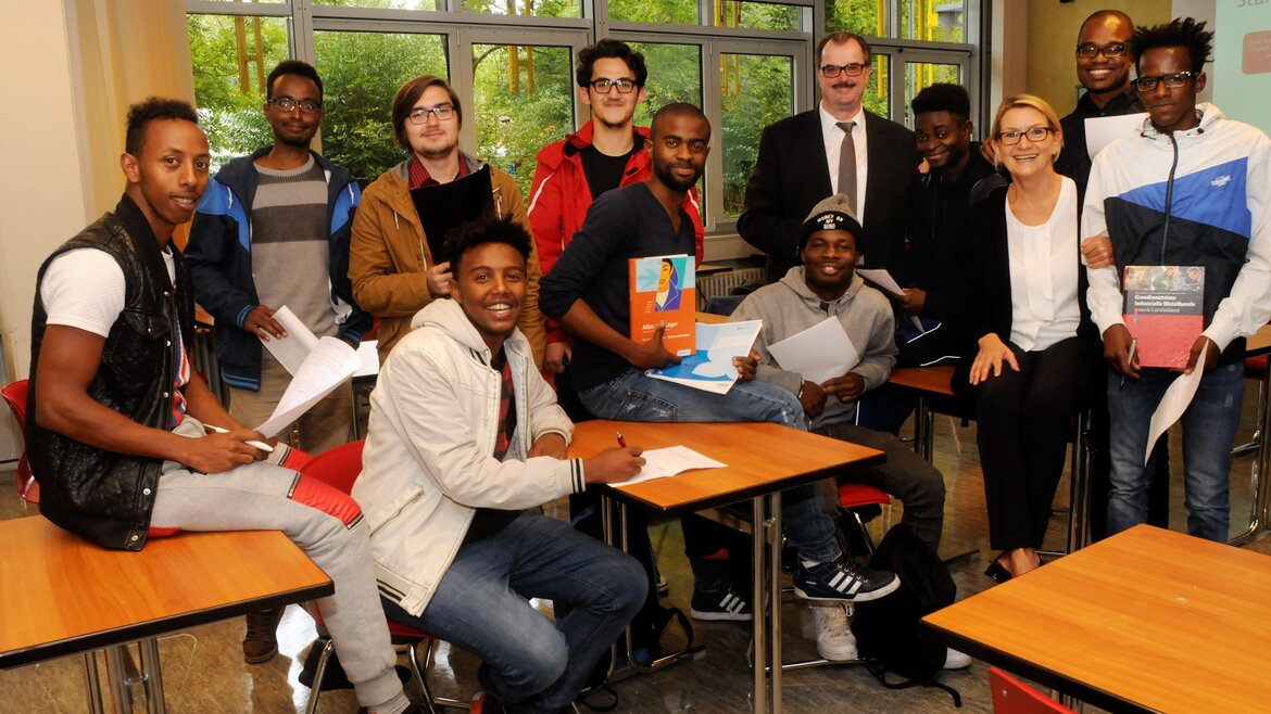 In Intensivklassen der allgemeinbildenden Schulen werden neuzugewanderte Schülerinnen und Schüler jahrgangsübergreifend unterrichtet. Ziel der Intensivklassen an Darmstädter Schulen ist es, einen langsamen Übergang in die Regelklassen zu schaffen. Die Schülerinnen und Schüler sollen befähigt werden, nach einem Jahr des intensiven Lernens ausreichende Deutschkenntnisse zu erwerben, damit sie den Regelunterricht erfolgreich besuchen können. In Darmstadt werden rund 325 neuzugewanderte Schülerinnen und Schüler an 18 Schulen überwiegend in Intensivklassen, zum Teil auch in Regelklassen unterrichtet. An den beruflichen Schulen lernen über das Programm "Integration und Abschluss" (InteA) junge Geflüchtete ohne oder mit geringen Deutschkenntnissen zwei Jahre Deutsch und werden auf den Hauptschulabschluss vorbereitet. Ziel ist die anschließende Integration in den Arbeitsmarkt.