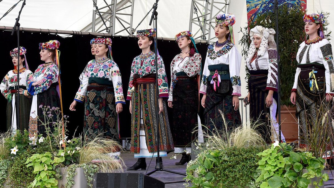 Auf der Hauptbühne im Spinelli-Park begeisterte das Theaterstudio „GERDAN“ aus Czernowitz die Zuschauer mit ukrainischem Folkloregesang.