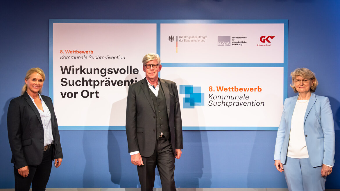 Im Rahmen des 8. Bundeswettbewerbs "Vorbildliche Strategien zur kommunalen Suchtprävention" wurden elf Städte, Gemeinden und Landkreise für ihre Aktivitäten zur wirkungsvollen Suchtprävention gewürdigt. Die Preisverleihung erfolgte in einer Vor-Ort-Veranstaltung mit der Leiterin der Bundeszentrale für gesundheitliche Aufklärung (BZgA), Dr. med. Heidrun Thaiss, und Gernot Kiefer, stellvertretender Vorstand des GKV-Spitzenverbandes. Die Drogenbeauftragte der Bundesregierung Daniela Ludwig war – ebenso wie die Preisträger-Kommunen – per Video zugeschaltet. Die Veranstaltung wurde als Live-Stream auf dem YouTube-Kanal der BZgA gesendet. Die Aufzeichnung wird anschließend auf der Website des Wettbewerbs sowie dem YouTube-Kanal der BZgA veröffentlicht.