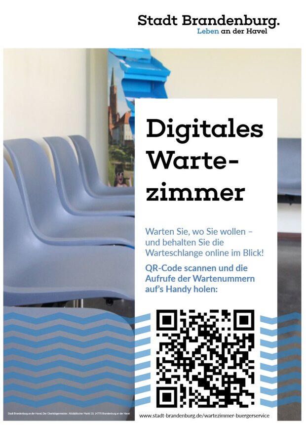 Besucherinnen und Besuchern des Bürgerservice in Brandenburg an der Havel steht seit Ende August die Online-Anwendung "Digitales Wartezimmer" zur Verfügung. Mithilfe des Online-Dienstes können Wartende am Handy nachschauen, welche Wartenummern aufgerufen werden und wie viele Personen insgesamt warten. Da die Wartenummern nacheinander abgearbeitet werden, lässt sich somit einschätzen, nach wie vielen Aufrufen die eigene Wartenummer an der Reihe ist.