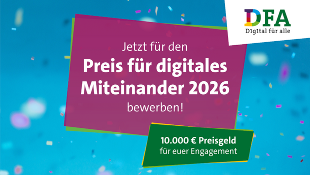 Der Preis ist eine Auszeichnung der Initiative “Digital für alle”, die seit 2020 jedes Jahr anlässlich des bundesweiten Digitaltags vergeben wird. Insgesamt ist er mit 10.000 Euro dotiert. Wer am Ende gewinnt, entscheidet eine hochkarätige Jury. Bewerbungsschluss ist der 15. April 2026.